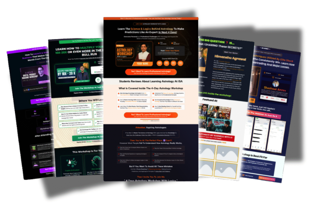 Get access to 500+ customizable landing pages crafted for online courses, live webinars, masterclasses, 1‑on‑1 sessions, and digital products